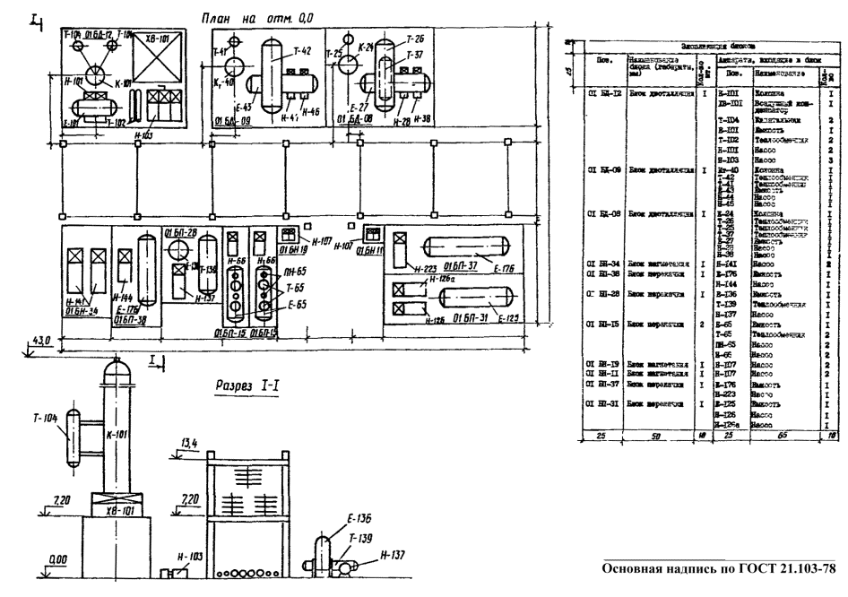 технологических блоков, блоков коммуникаций и оборудования, не входящего в